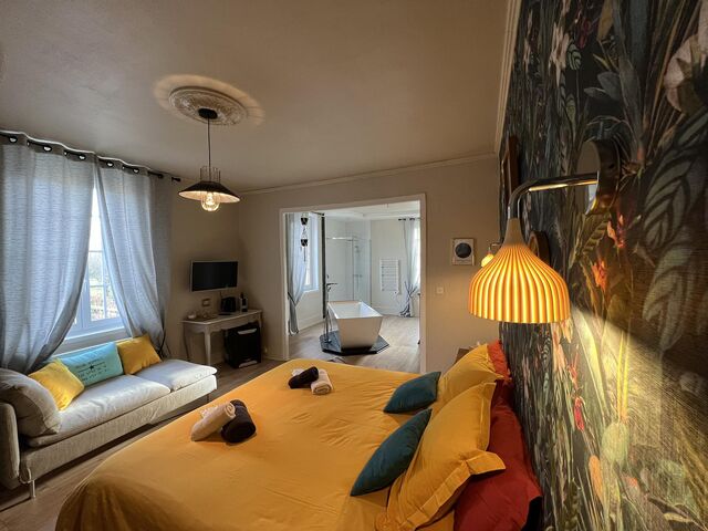 David et Frédéric vous accueillent au cœur de Verdun-sur-le-Doubs dans une grande bâtisse entièrement rénovée et décorée avec goût. Anciennement occupée par un antiquaire, les chambres présentent des objets de décoration et des meubles de style Louis XVI, qui s'intègrent également à des éléments modernes. Lors de votre séjour, profitez également d'un jardin avec piscine et jacuzzi , salon commun, une terrasse et un bar.